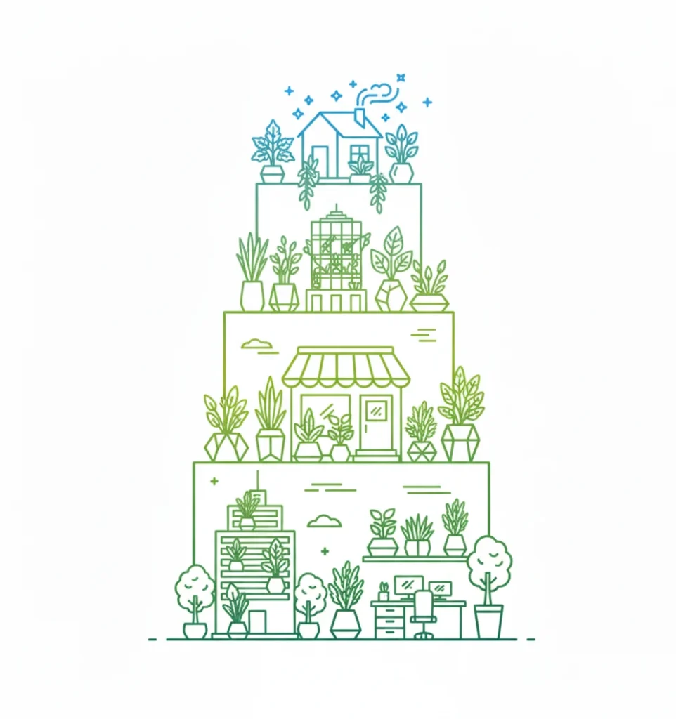 Planterior 플랜테리어란? 식물(Plant)과 인테리어 (Interior)의 합성어로 자연친화적이면서 내추럴한 홈스타일을 식물로 실내를 꾸밈으로써 공기정화 효과와 심리적 안정 효과를 얻고자 하는 인테리어 방법 입니다. 친환경적 인테리어 효과 식물은 단순히 아름다운 장식이 아닙니다. 공기 중 유해물질을 흡수하고, 산소를 방출하며, 습도를 조절해 더 건강한 실내 환경을 만듭니다. 친환경적인 플랜테리어는 인공적인 인테리어로는 줄 수 없는 쾌적함·안정감·지속가능성을 제공합니다. 이제 식물은 쾌적한 환경개선 효과는 물론 가장 뛰어난 인테리어 소품으로 각광받고 있습니다 플랜테리어의 활용성 집 안의 작은 거실부터 사무실, 카페, 상업 공간까지. 플랜테리어는 공간의 성격과 목적에 따라 맞춤형으로 적용할 수 있습니다. 브랜드의 아이덴티티를 담거나, 직원의 업무 효율을 높이거나, 고객에게 따뜻한 환영의 메시지를 전하는 데에도 활용됩니다. 즉, 플랜테리어는 단순한 ‘인테리어 트렌드’가 아니라, 공간의 가치를 극대화하는 전략적 선택입니다. 실내오염물질의 종류 실내오염물질 주요 발생원 미세먼지 난방, 취사, 배기가스, 흡연 포름알데히드 가구, 접착제, 연료의 연소, 담배연기 휘발성유기화합물 배기가스, 흡연, 접착제 미생물성 물질 실내 먼지, 애완동물, 공기정화기, 습하고 통풍이 안되는 장소 이산화질소 연료의 연소, 담배연기, 취사 오존 레이저프린터, 복사기 등 사무용기기 사용시 일산화탄소 난방, 취사, 흡연 이산화탄소 연료의 연소, 애완동물 공간별 식물배치 추천 야간 산소배출 침실 음이온을 방출하고 마음을 안정시켜주는 식물 밤에 산소를 공급하는 공기정화 기능 좋은 식물 배치 추천 선인장 호접난 다육식물 포름알데히드, 새집증후군 완화 효과 거실 가족이 모여 같이 지내는 거실에는 호흡기 질환, 피부질환 등을 유발하는 키실텐, 암모니아, 포름알데히드 등과 같은 오염물질이 많아 이런 성분들을 제거할 수 있는 식물을 추천 킹 벤자민 홍콩 야자 테이블 야자 아스파라거스 고무나무 스킨답서스 천량금 파키라 산호수 고사리 음이온 방출, 기억력 및 안정기능 사무실 컴퓨터를 비롯한 여러 가지 전자제품에 노출되기 쉬우므로 이를 차단하고 집중력 향상에 도움이 되는 식물을 두는 것이 좋습니다. 작은 식물로 이산화탄소를 흡수하며 음이온을 방출하는 식물을 두거나 기억력 향상에 좋은 허브류를 추천합니다. 레몬밤 로즈마리 아이비 파키라 필로덴드론 일산화탄소와 음식물 냄새 제거 주방 요리할때 발생하는 일산화탄소와 이산화 질소 이산화황 제거 음식 냄새를 없애고 공기정화 능력이 있는 식물이 좋습니다. 허브화분으로 인테리어 및 음식 향신료로 활용 스킨답서스 산호수 아펠란드라 아이비 허브류 자연은 최고의 인테리어입니다 플라스틱이 아닌 살아 있는 초록으로. 나와 가족, 직원 모두가 건강하고 안심할 수 있는 공간을 만드세요 플랜테리어 상담 신청